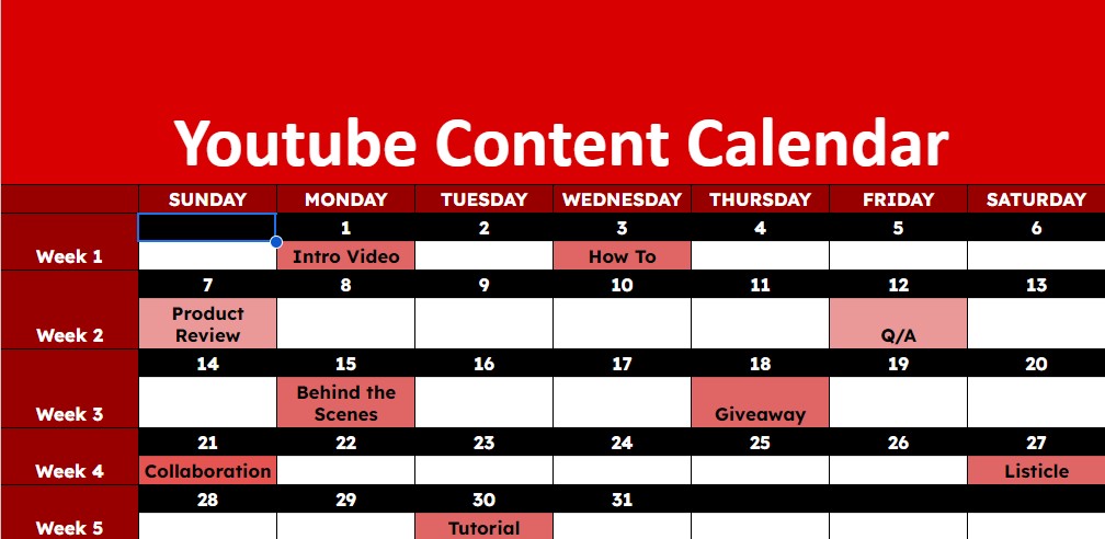 Track Progress: As you progress with your content creation, update the template with actual video titles, descriptions, and other details. This keeps your calendar accurate and up-to-date.