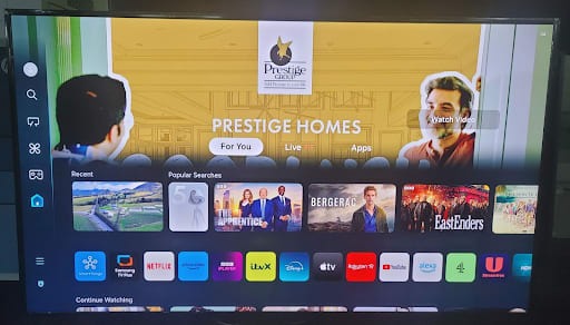 Premium placement on Samsung CTV home screen with large-format displays when users first turn on their television—maximum visibility and impact for major brand announcements, product launches, or awareness campaigns.