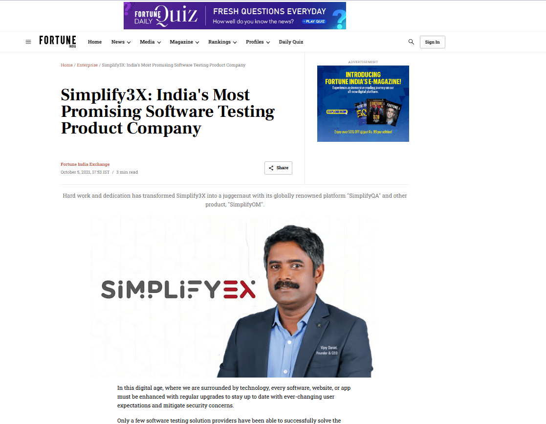 What Happens After Fortune India Advertisement Is Displayed?
