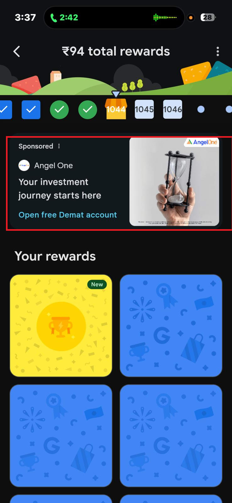 Strategic placement within Google Pay's rewards and offers section, reaching deal-seeking consumers actively looking for discounts, cashback opportunities, and promotional deals across various categories.