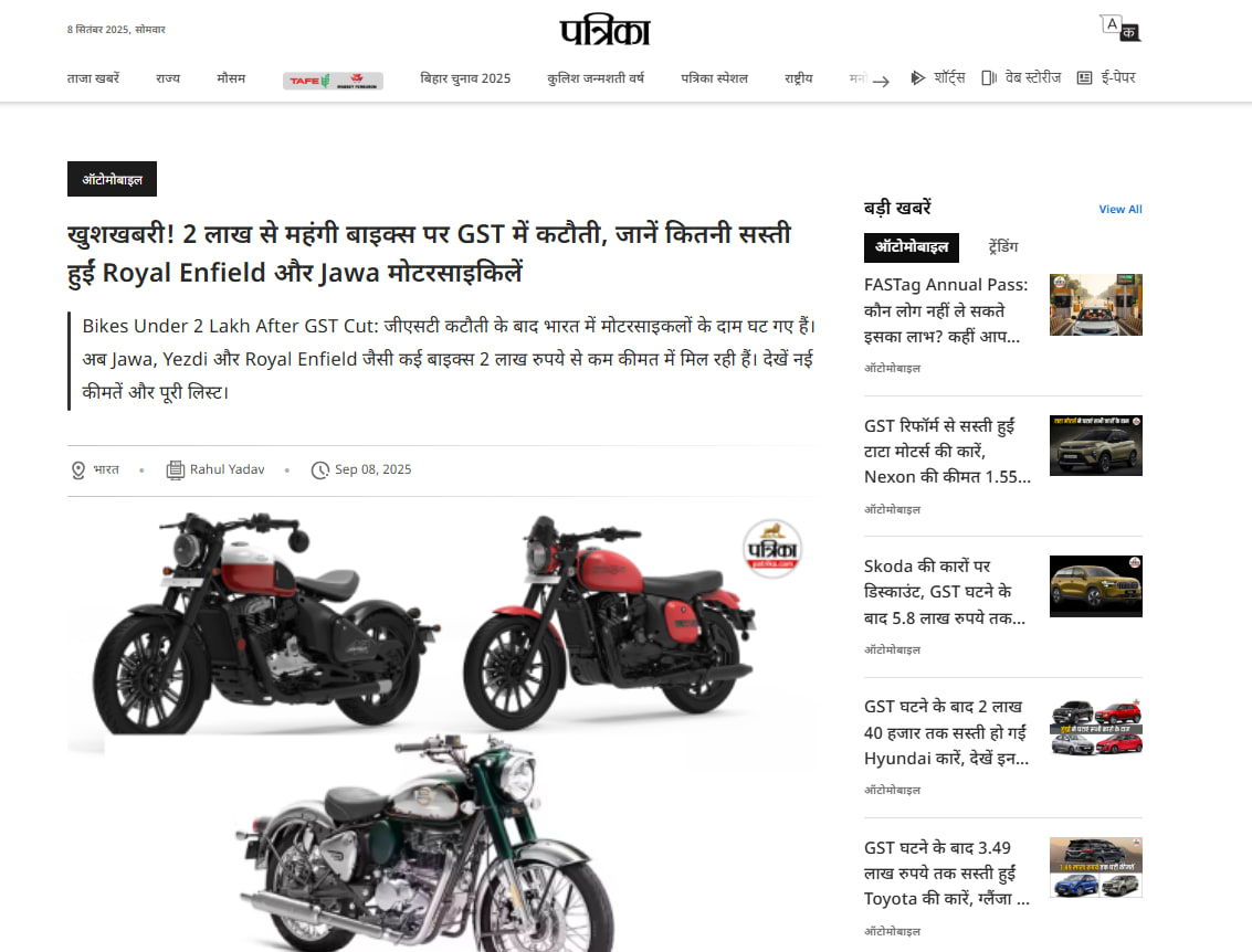 With a stronghold, Advertising for Patrika is suitable for companies and brands looking to target a mass audience. Patrika has big brand advertisers and sponsors from FMCG, E-Commerce, Wellness, Mobile Accessories, BFSI, Automobiles, and Service Provider backgrounds.