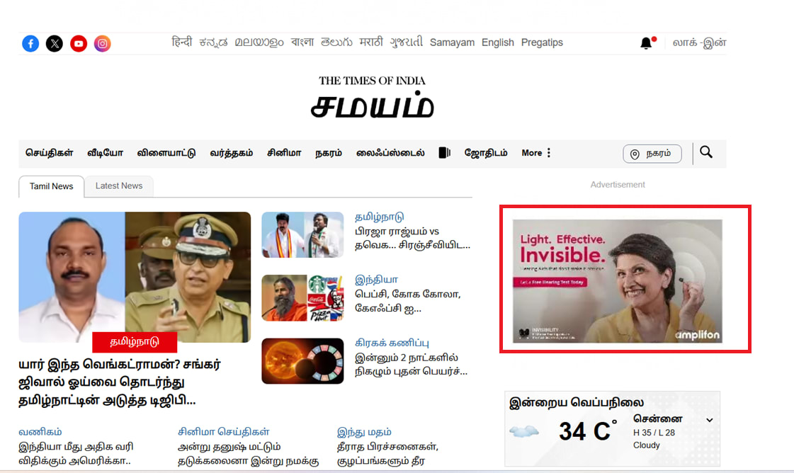 After displaying Samayam Tamil Advertisement, sponsors will receive execution proof. Execution proofs will include screenshots of the ads and campaign reports of their progress over the duration of Samayam Tamil Advertisements.