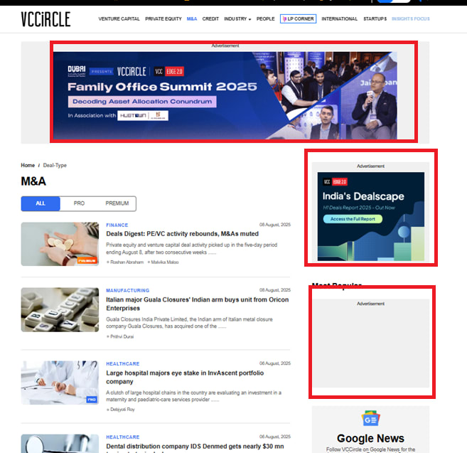What Do You Get By Placing VCCircle Ads? Sponsors can find media options that meet all their advertising requirements. VCCircle Ad Rates and ad options offered by The Media Ant can help build brand awareness of your company.