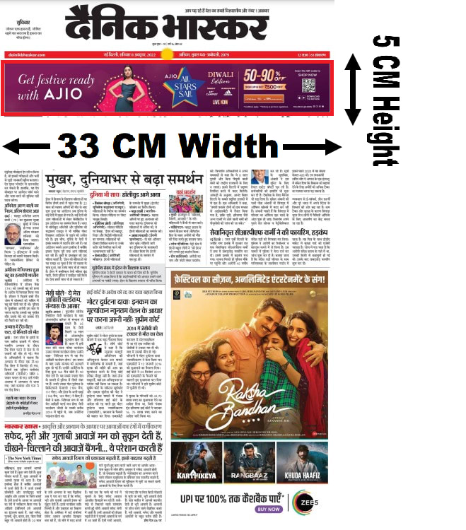 Select Size and Placement: Choose where in Dainik Bhaskar, Punjab, Hindi your ad will appear, and the size it will occupy.