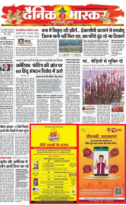 Advertising in Dainik Bhaskar, Punjab, Hindi connects your brand with a dynamic and influential audience, through a trusted and respected publication renowned for its insightful and authoritative content. Whether your goal is to launch a new product, increase brand awareness, or drive direct responses, Dainik Bhaskar, Punjab, Hindi offers a platform tailored to meet your advertising needs.