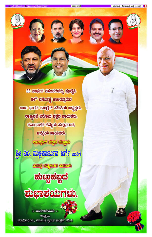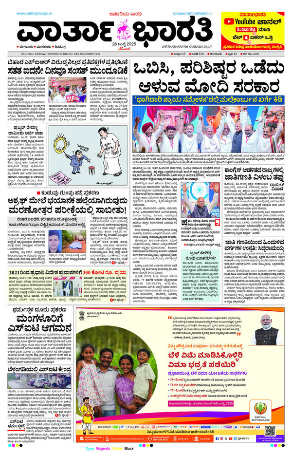 Vartha Bharati, Mangalore, Kannada has a wide range of audiences who are interested in Regional, National, and International News. Vartha Bharati, Mangalore, Kannada is one of the most trusted newspaper brands. Vartha Bharati, Mangalore, Kannada Advertisement will help advertisers to build trust with their audience. Vartha Bharati, Mangalore, Kannada Advertisement will also boost visibility to a city-wide audience and help with brand recall.