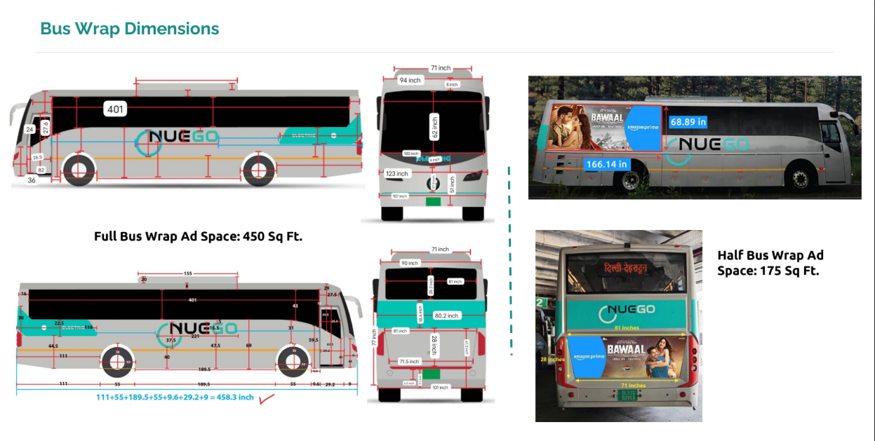 Full bus exterior wraps offer maximum brand visibility by covering the entire outer surface of the bus. In this format, ads are seamlessly wrapped around the back, driver side, and passenger side panels of the AC bus, making your brand visible from all angles. This high-impact moving billboard travels through prime city routes, capturing attention and ensuring strong brand recall among commuters, drivers, and pedestrians—giving your brand widespread visibility wherever the vehicle goes.