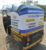 Auto-rickshaw advertising, which is also called auto advertising or auto-rickshaw branding, is a popular type of outdoor advertising that involves placing ads on the exterior of auto-rickshaws. Auto-rickshaws are commonly used for transportation in many countries, and they often travel through densely populated areas and busy streets, providing an ideal opportunity to reach a large audience. Auto-rickshaw advertisements can be in the form of stickers, posters, or vinyl wraps, and they are placed on the sides, back, or rooftops of the vehicle. Companies that specialize in auto-rickshaw advertising now offer services such as design, printing, and installation of advertisements on vehicles.