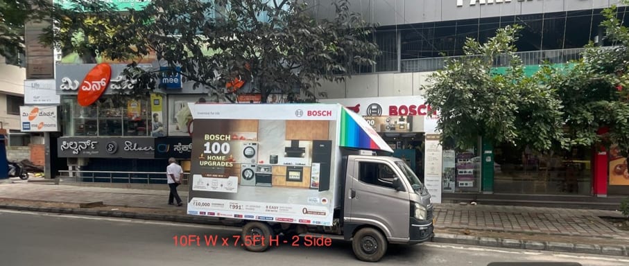 Mobile Van in Bangalore is a particularly effective way to reach and target commuters on the road, shoppers in commercial areas, or residents in various locations. Moving within specified routes, these ads allow brands to be more innovative, which can help them stand out from the competition. These ads are often used to promote or launch new products/events building brand awareness.