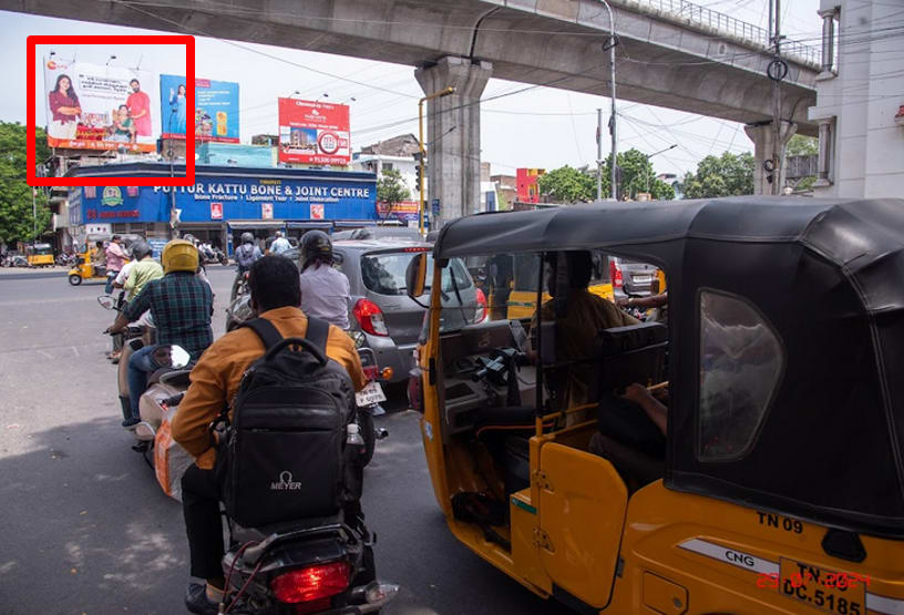 - Owing to slow-moving traffic in Ashok Nagar. This gives a lot of time and opportunity to the advertisers to draw commuters’ attention through advertisements on hoardings.