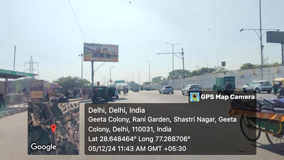 - Owing to slow-moving traffic in Geeta Colony. This gives a lot of time and opportunity to the advertisers to draw commuters’ attention through advertisements on hoardings.