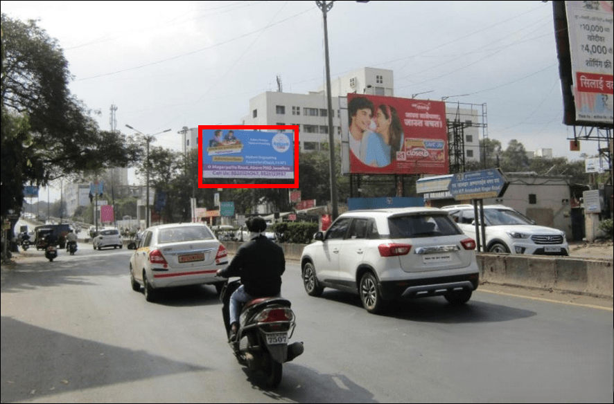 - Owing to slow-moving traffic in Hadapsar. This gives a lot of time and opportunity to the advertisers to draw commuters’ attention through advertisements on hoardings.