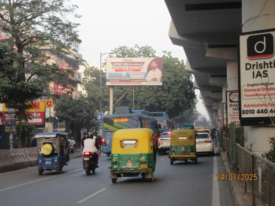 - Owing to slow-moving traffic in Karol Bagh. This gives a lot of time and opportunity to the advertisers to draw commuters’ attention through advertisements on hoardings.