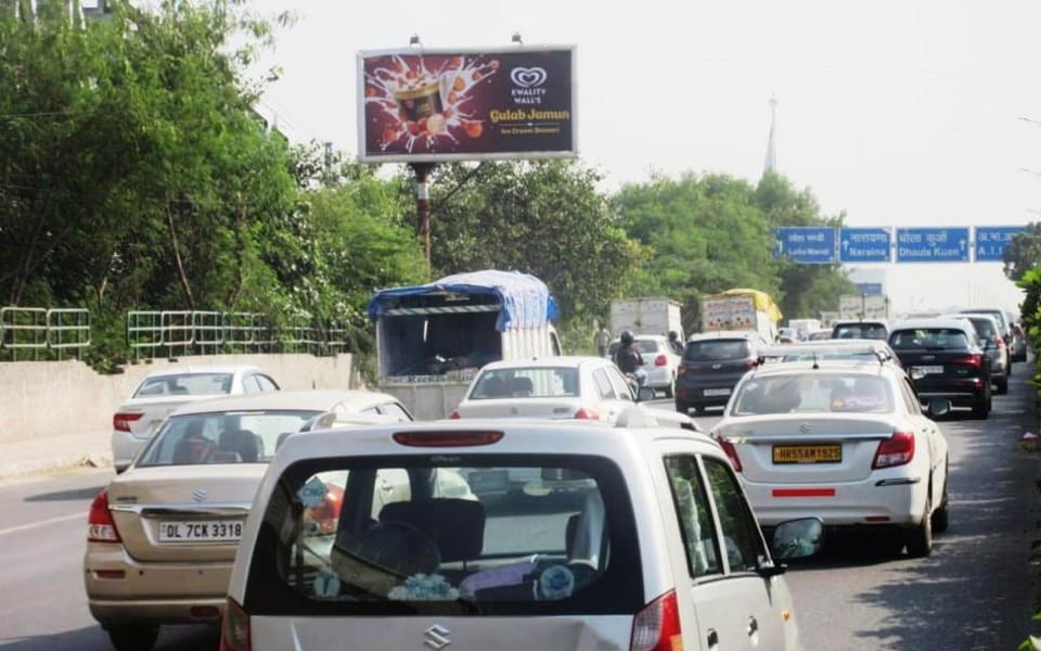 - Owing to slow-moving traffic in Kirti Nagar. This gives a lot of time and opportunity to the advertisers to draw commuters’ attention through advertisements on hoardings.