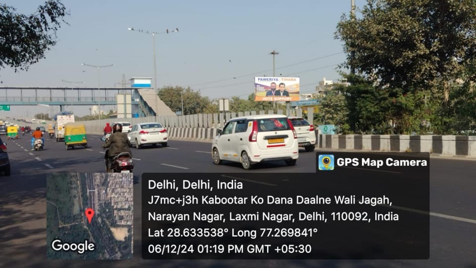 - Owing to slow-moving traffic in Laxmi Nagar. This gives a lot of time and opportunity to the advertisers to draw commuters’ attention through advertisements on hoardings.