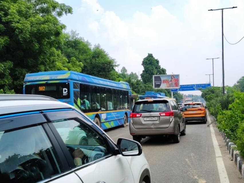 - Owing to slow-moving traffic in Mukherjee Nagar. This gives a lot of time and opportunity to the advertisers to draw commuters’ attention through advertisements on hoardings.