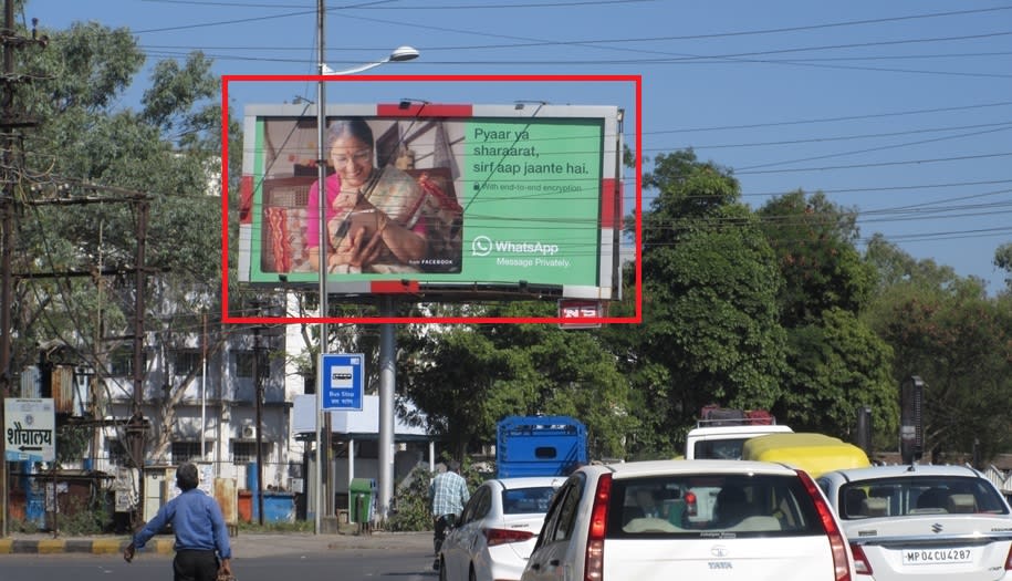 - Owing to slow-moving traffic in New Palasia. This gives a lot of time and opportunity to the advertisers to draw commuters’ attention through advertisements on hoardings.