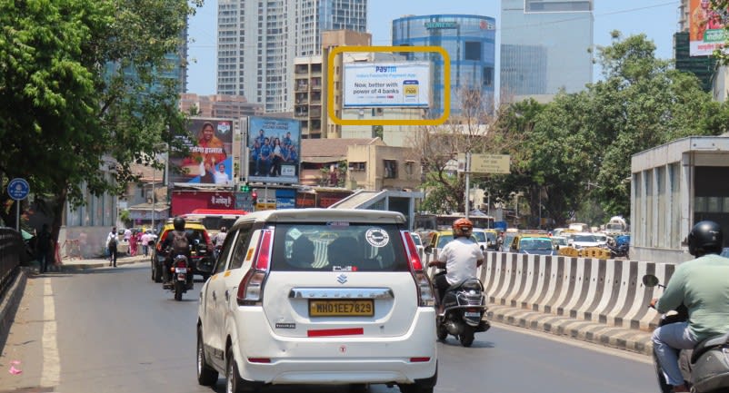- Owing to slow-moving traffic in Prabhadevi. This gives a lot of time and opportunity to the advertisers to draw commuters’ attention through advertisements on hoardings.