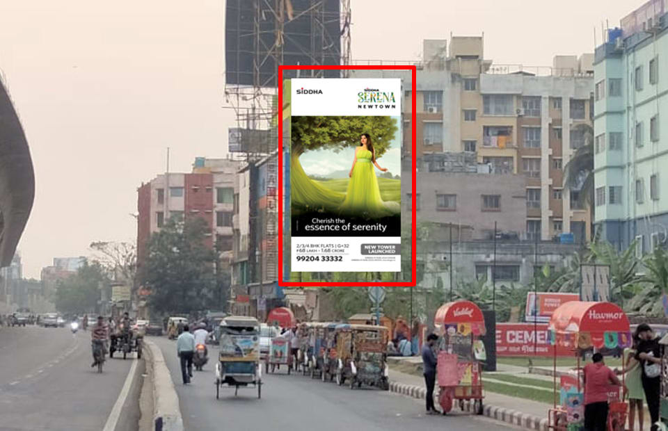 - Owing to slow-moving traffic in Rajarhat. This gives a lot of time and opportunity to the advertisers to draw commuters’ attention through advertisements on hoardings.