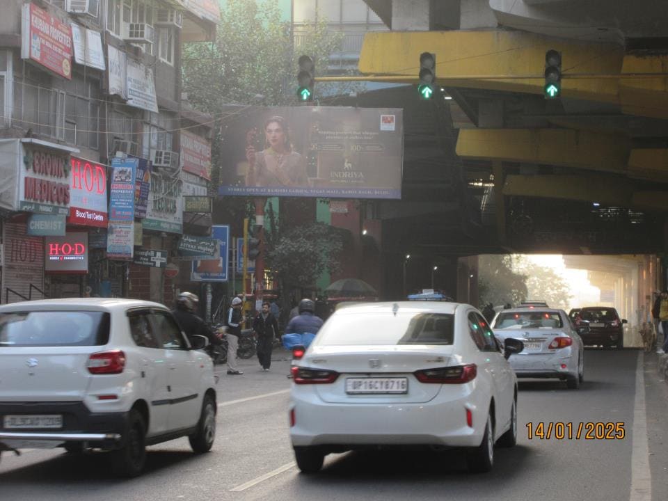 - Owing to slow-moving traffic in Rajinder Nagar. This gives a lot of time and opportunity to the advertisers to draw commuters’ attention through advertisements on hoardings.