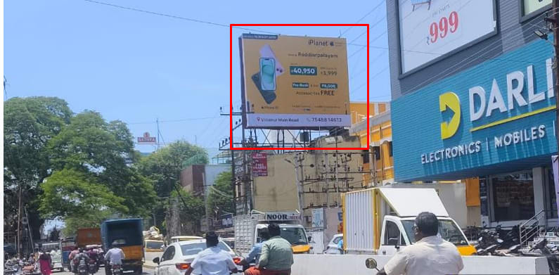- Owing to slow-moving traffic in Reddiarpalayam. This gives a lot of time and opportunity to the advertisers to draw commuters’ attention through advertisements on hoardings.