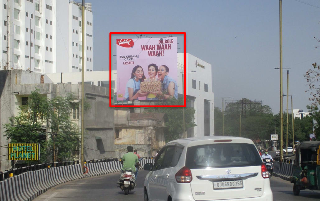 - Owing to slow-moving traffic in Sayajiganj. This gives a lot of time and opportunity to the advertisers to draw commuters’ attention through advertisements on hoardings.