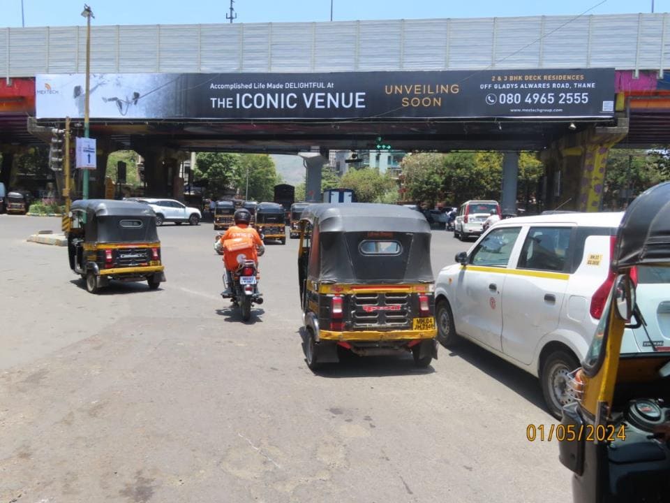 - Owing to slow-moving traffic in Thane West. This gives a lot of time and opportunity to the advertisers to draw commuters’ attention through advertisements on hoardings.