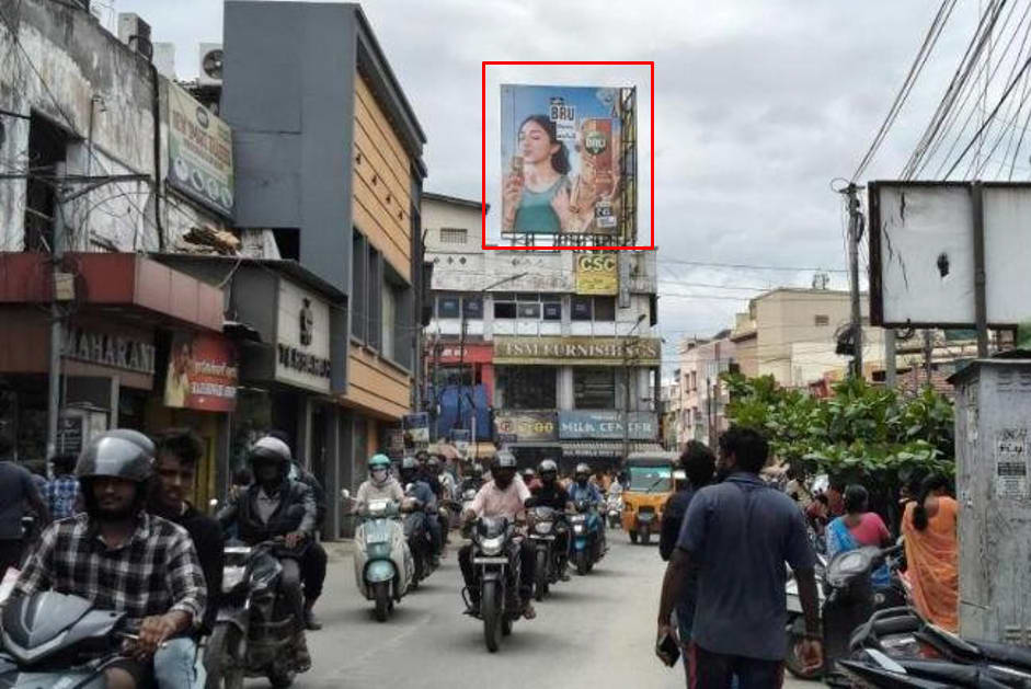 - Owing to slow-moving traffic in Ukkadam. This gives a lot of time and opportunity to the advertisers to draw commuters’ attention through advertisements on hoardings.