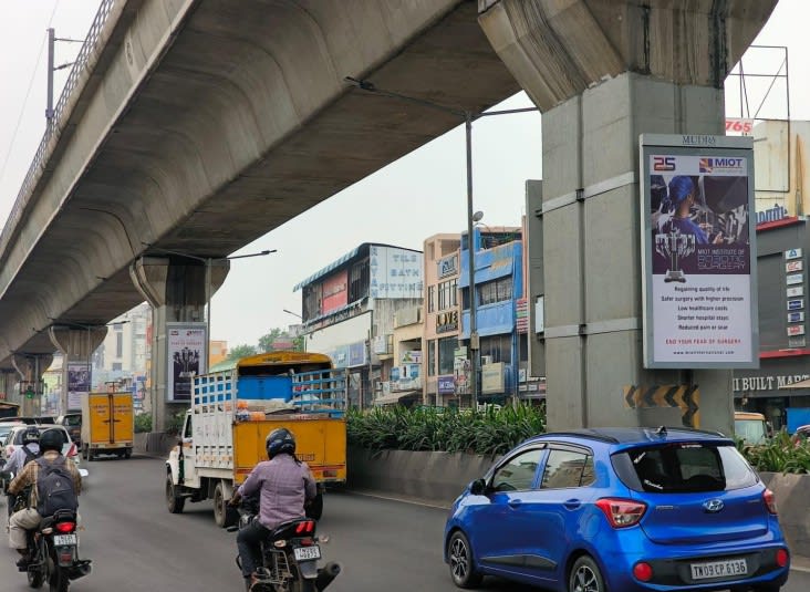 Choolaimedu Metro Pillar Advertising targets commuters, passers-by and people stuck in traffic on these roads. These ads are strategically placed to attract the attention of a wide hyperlocal audience to increase brand awareness. Ads in Metro Pillars target different socio-economic groups and create a high impact through eye-catching and cost-effective ads, which improves brand recall.